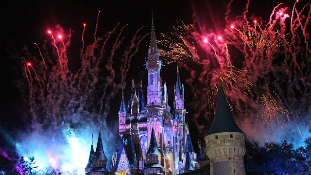 Notice the castle changing colors .. many awesome changes happen with the castle all the way through the Fireworks show!!!!